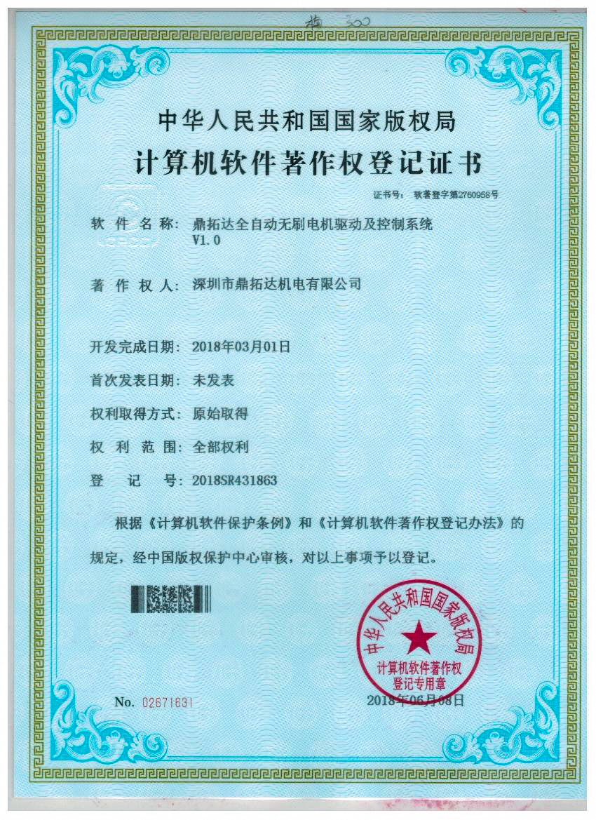 首頁->產(chǎn)品認(rèn)證->鼎拓達(dá)全自動無刷電機(jī)驅(qū)動及控制系統(tǒng)V1.0